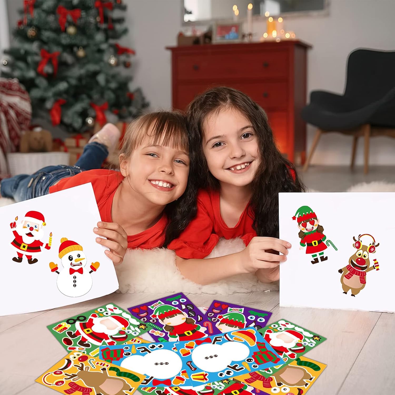 12 Random Sheets DIY Christmas Stickers ??Make-a-Face Holiday Craft for Kids