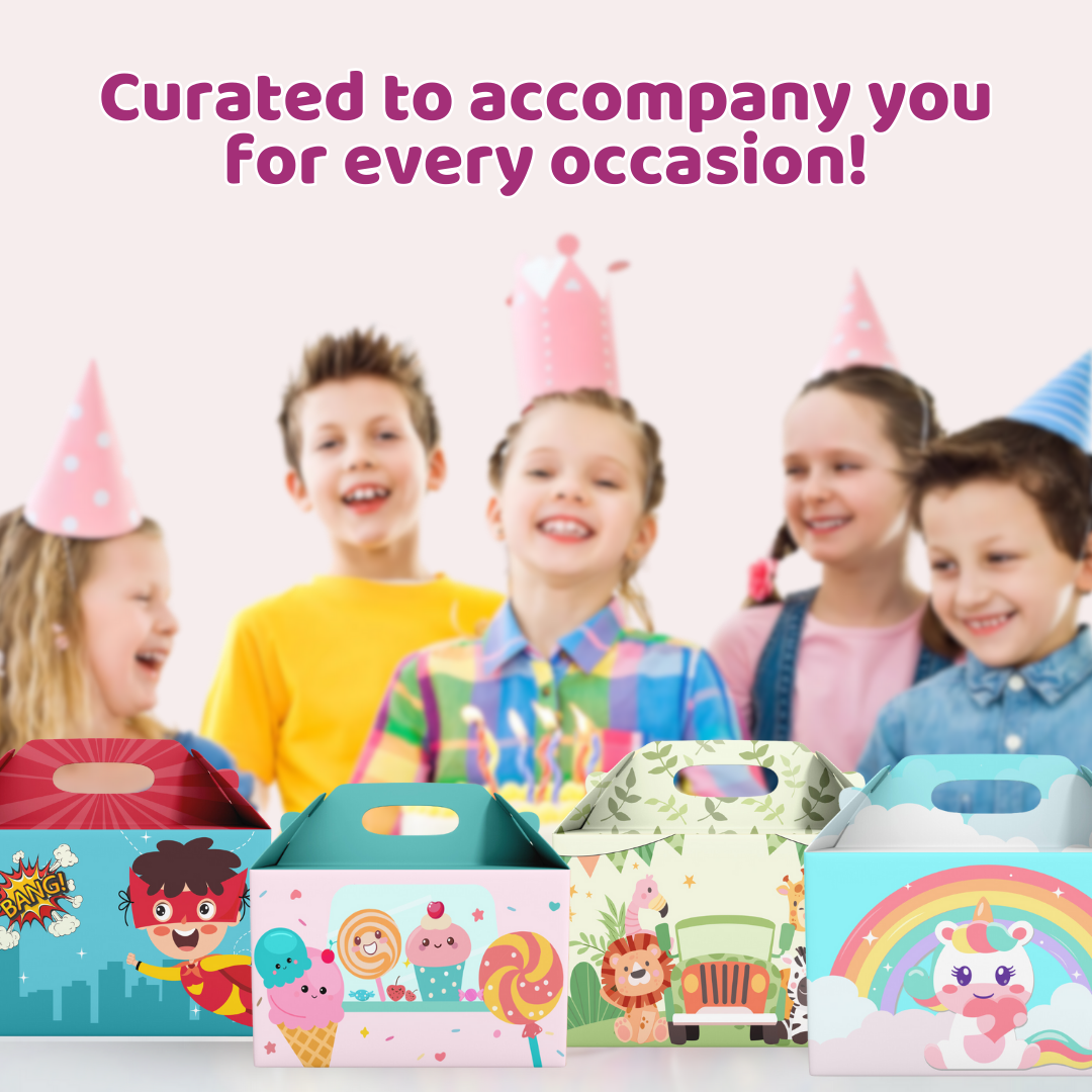 - Vibrant Multi-Themed Designs ??Featuring superheroes, jungle animals, unicorns, and candies, these gift boxes offer eye-catching variety for every occasion.