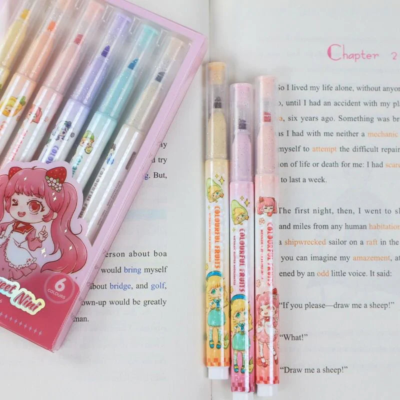 Metallic Glitter Highlighter Set of 6 Colors